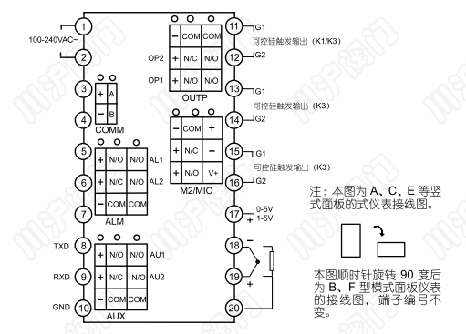 | 報警功能 | 上限、下限、偏差上限、偏差下限等4種方式,多可輸出3路,有上電免除報警選擇功能 |